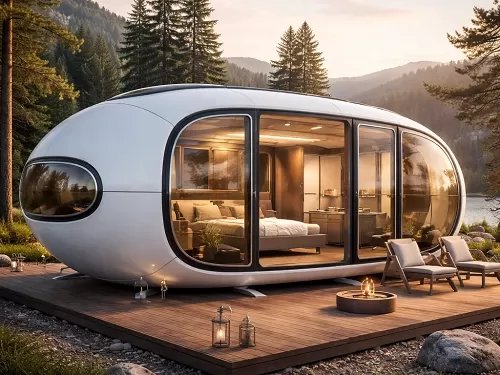 The Outdoor Space Capsule Tiny House represents a futuristic leap in prefabricated living spaces — blending innovative design, advanced materials, and smart living solutions into a compact, tran